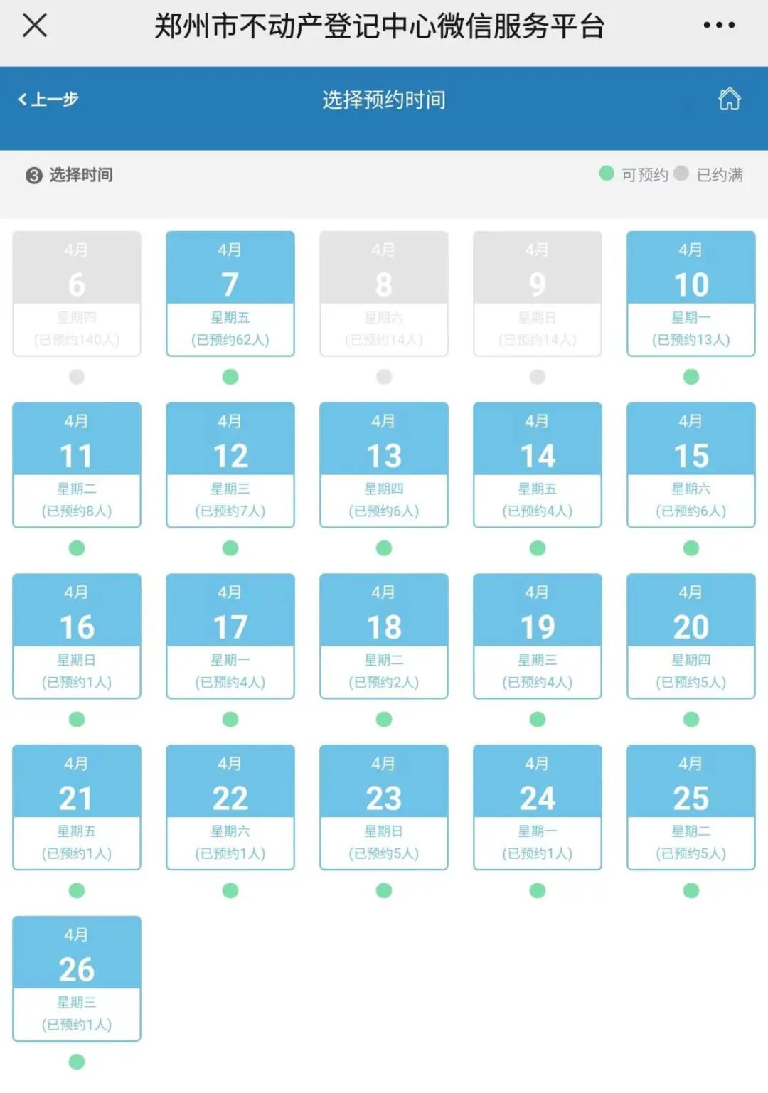 大河报·豫视频记者登录郑州市不动产登记中心微信公众号预约发现,抵押、变更等不动产登记部门单独办理的业务,两三日内基本上都有余号可以预约,当天即可办理。但二手房转移类不动产登记业务预约紧张,20日内已无号可约。