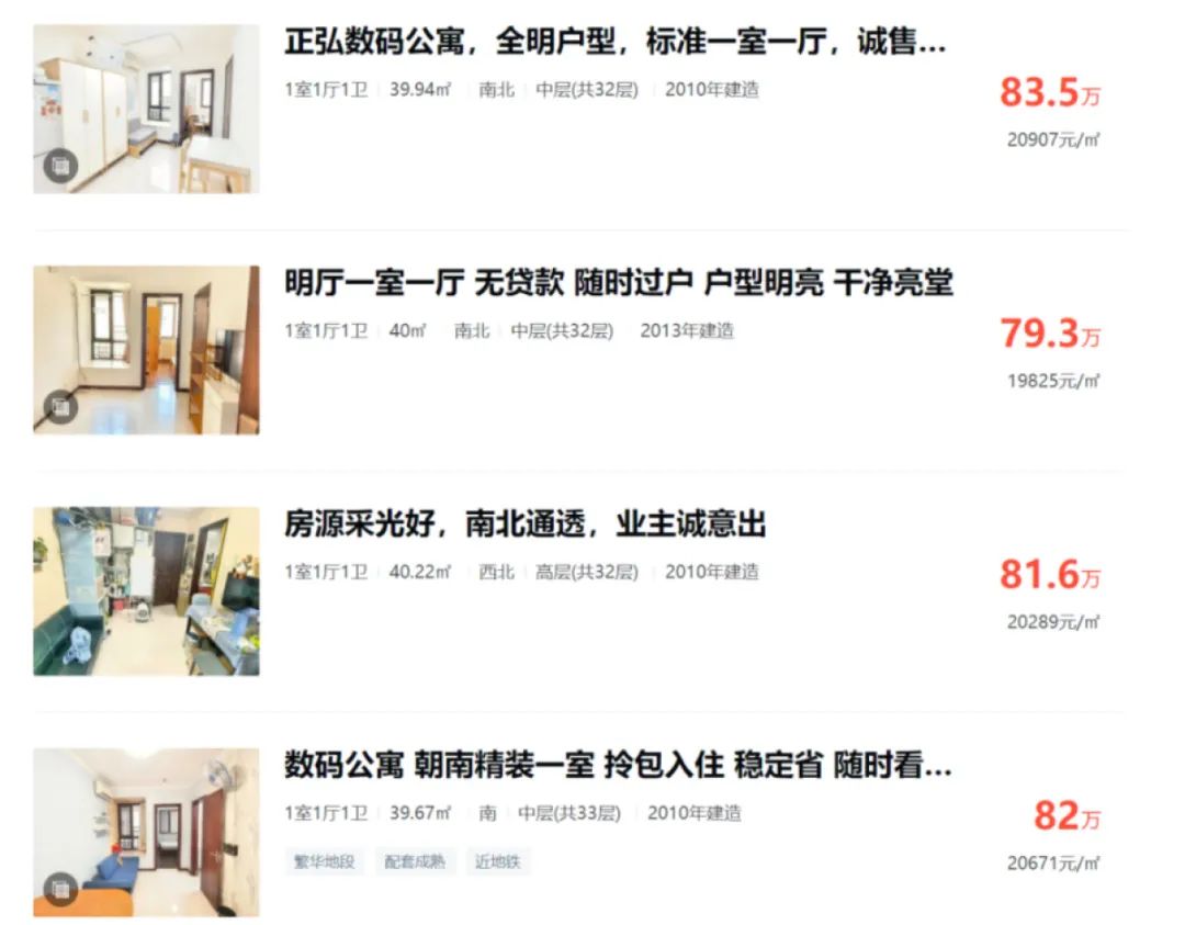 在成交量上涨的同时,记者发现,部分学区房的挂牌价格与成交价格也呈现出上涨态势。“比如说,正弘数码公寓23㎡不带厨房的一室。年前的时候,朋友手中一套简单装修的房源以不到40万的价格卖掉了,而最近,同小区的同户型房源基本上都在45万-50万元,甚至还有52万卖掉的案例。”一位相熟的中介介绍,该户型的均价近期基本在21000元/㎡左右,40㎡左右的一室,也从年初的60多万涨到如今的75万-85万元,涨幅明显。