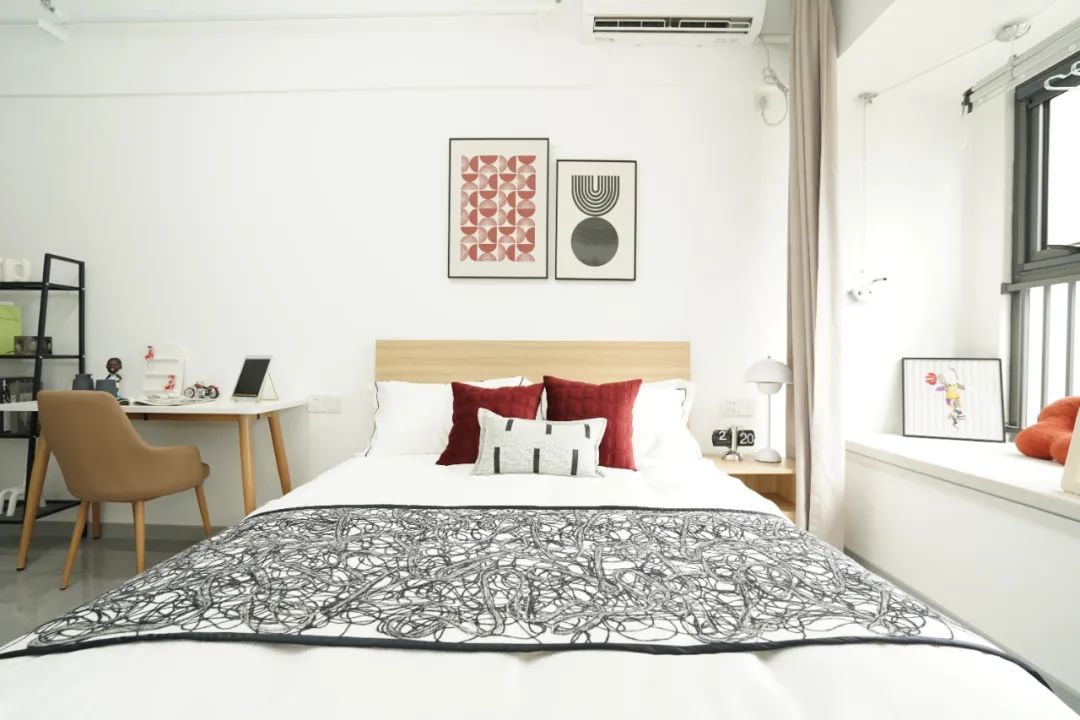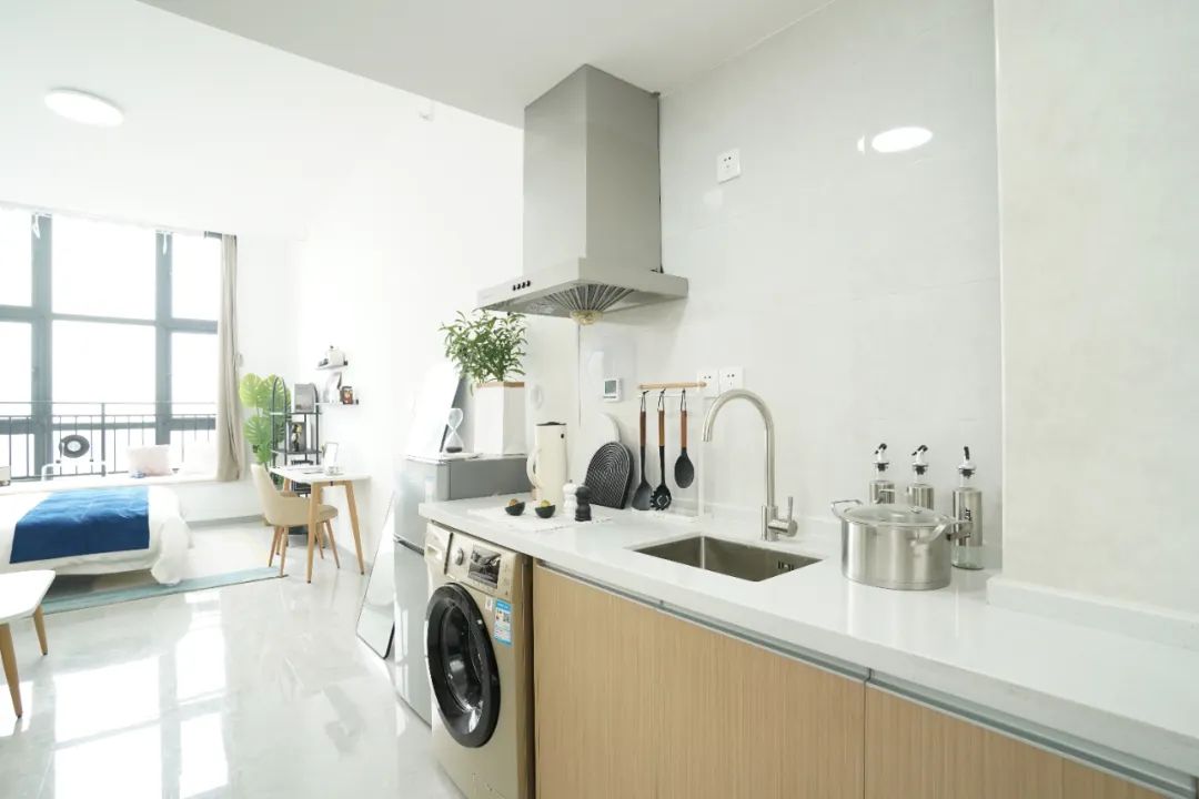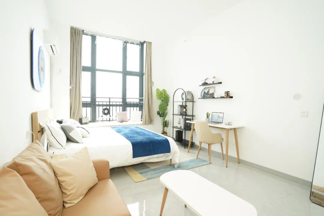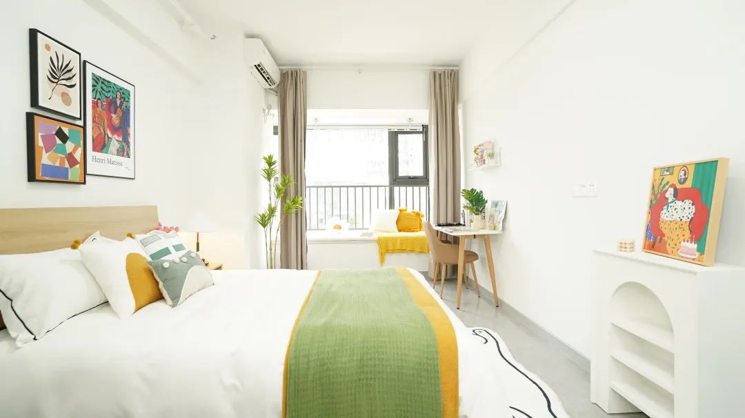 项目配备智能门锁、独立卫浴、床、衣柜、书桌、洗衣机、空调、冰箱、抽烟机、晾衣架等,公寓精装修设计,拎包入住,智能化管理,商业、教育配套齐全,满足入住人群生活、社交需求。