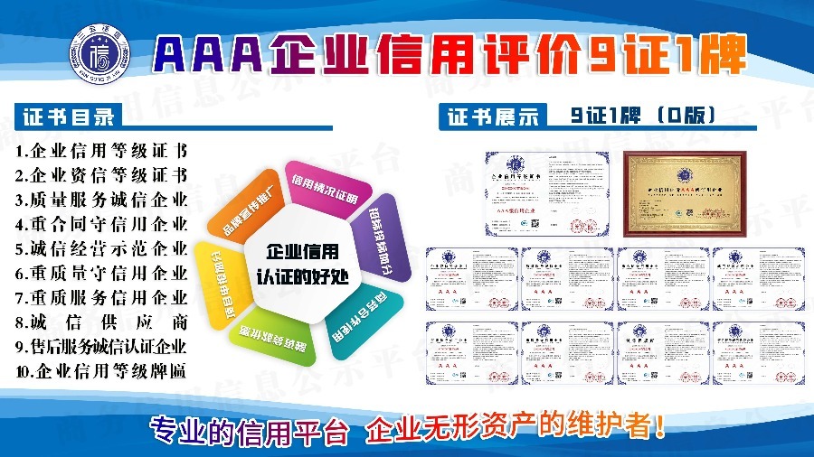 企‬业AAA等级认证,招投加标‬分,市准场‬入,提升企业形象和品牌争竞‬力!