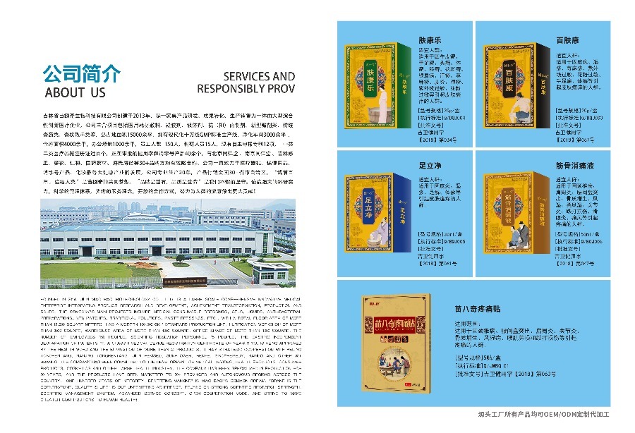 吉林省苗捌奇生物科技有限公司创建于2014年,致力于医疗器械、保健用品、化妆品等大健康产业,是一家集产品研发、成果转化、生产、销售为一体的现代化科技公司,总投资2000万元,总占地面积15000余平,拥有现代化车间5000余平 ,仓库面积4000余平 办公场地1000余平,员工人数 150人,科研人员15人,日生产膏贴 50万片,日包装能力500余件。现有自主申报专利12项, 一类二类医疗器械注册证和保健用品批准文号近百个,与北京同仁堂 、南京同仁堂 、吉林修正、国药本草等品牌方均有合作。2025年,吉林省苗捌奇生物科技有限公司正式入驻河南郑州,新增时珍中科健康产业有限公司生产基地,车间占地5000平,具备贴剂、凝胶、液体等全自动生产线,同时拥有二类医疗器械、吉卫健用字、河南团标多种产品文号。两大生产基地可以满足不同渠道、不同客户的更高产品需求。“诚信百年 ,造福人类 ”是苗捌奇的共同梦想 。“品牌是眼睛,品质是生命 ”是我们共同的追求,依靠强大的科研实力,先进的管理体系,合作双赢的经营理念,为人类的健康做出更大贡献。