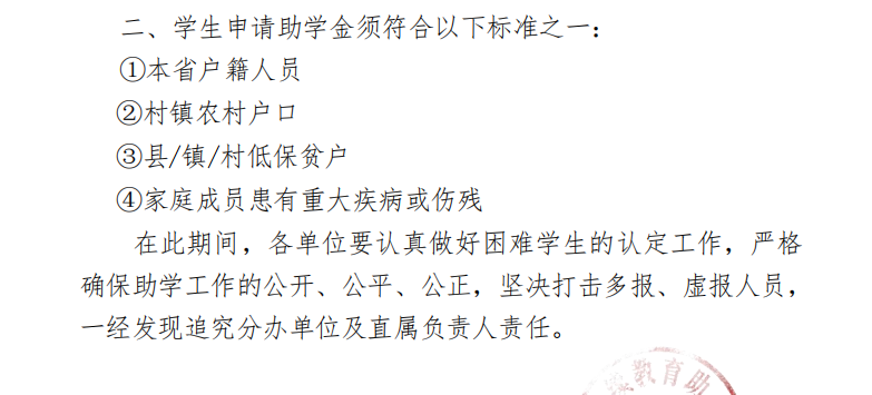 为支持全民教育提升,提高全民素质化教育进程,现在满足以下任意条件即可申请助学金: