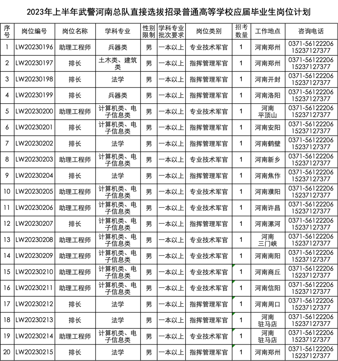 武警河南总队2023年直接选拔招录毕业生公告!截止3-31