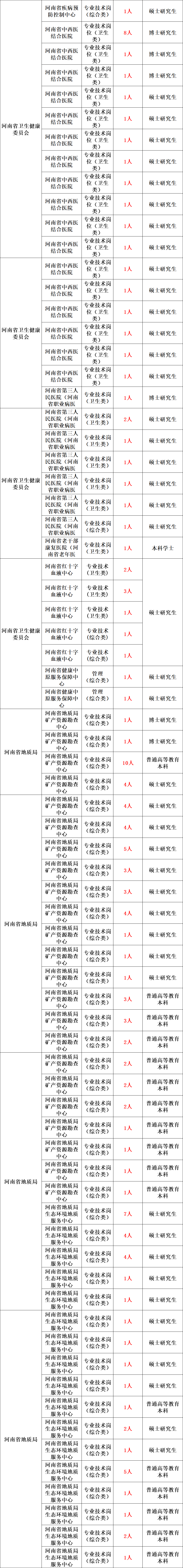 省直单位27家及郑州市等17个省辖市参加本次联考。共有事业单位795家,招聘岗位2697个,招聘人数4505名。其中省直事业单位70家,招聘岗位356个,招聘人数672名;省辖市事业单位 725家,招聘岗位2341个,招聘人数3833名。省直系统具体参加联考的事业单位、招聘岗位、人数、岗位条件等相关招聘信息详见职位表。