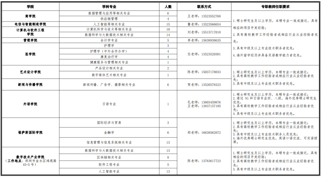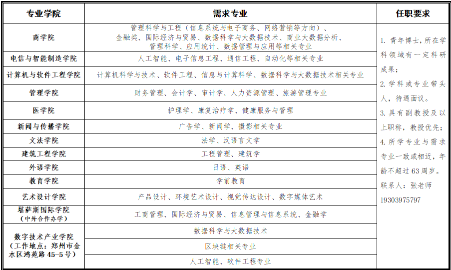 郑州西亚斯学院2023年师资引进和招聘计划!截止5-20