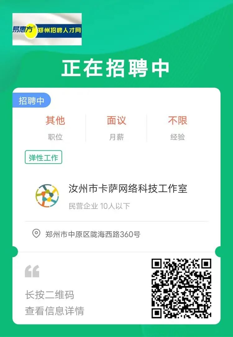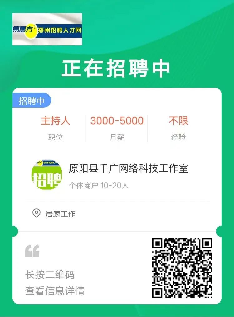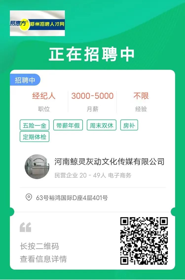 正在阅读:【急聘】月薪5000-20000+五险一金+带薪年假!郑州多家企业急聘!!