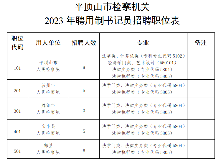 5月9日—5月13日,2023年平顶山市检察机关聘用制书记员招聘考试开始报名,平顶山市两级检察院共招聘聘用制书记员37名。