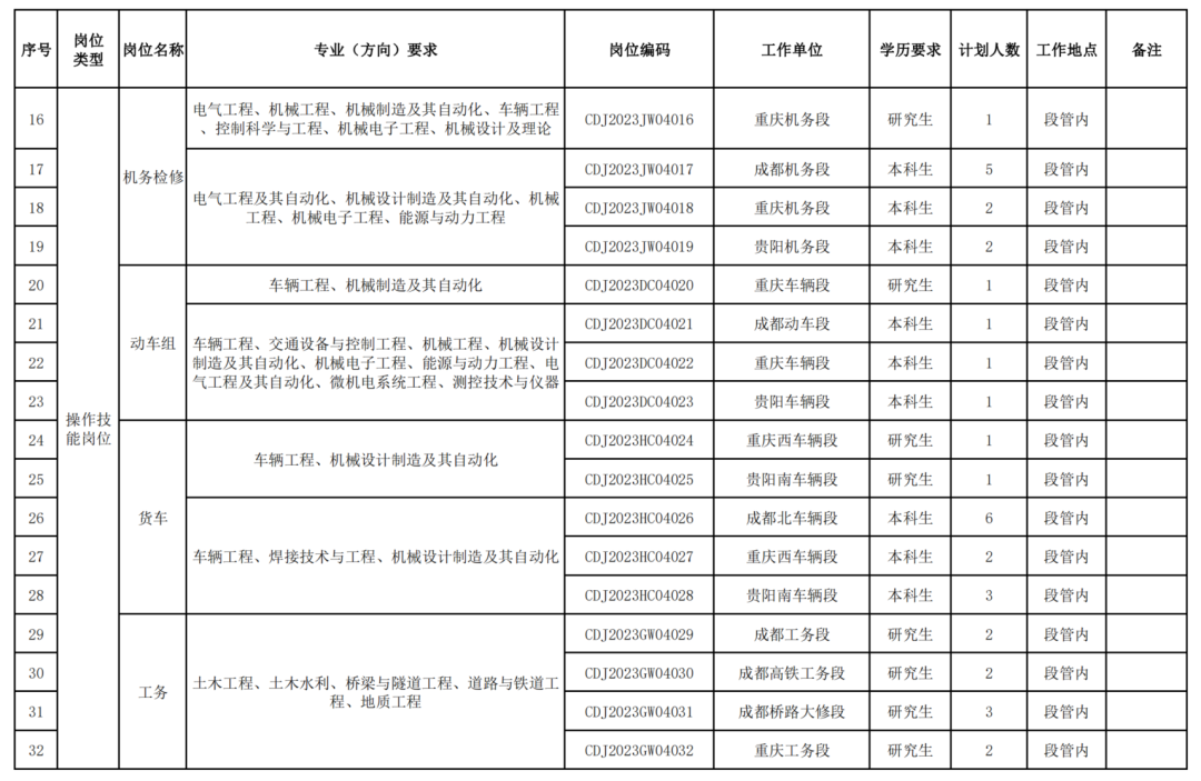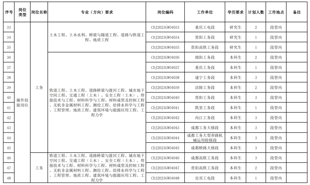 中国铁路成都局集团2023年高校毕业生招聘公告(四)