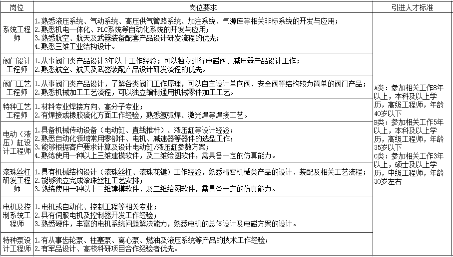 本科及以上学历,机械类、新材料类(高分子)、先进工艺类专业或研究方向,与所应聘岗位方向保持一致,具有相关工作经历或经验。
