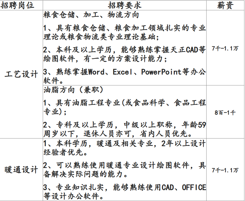 河南省粮食工程设计院招人