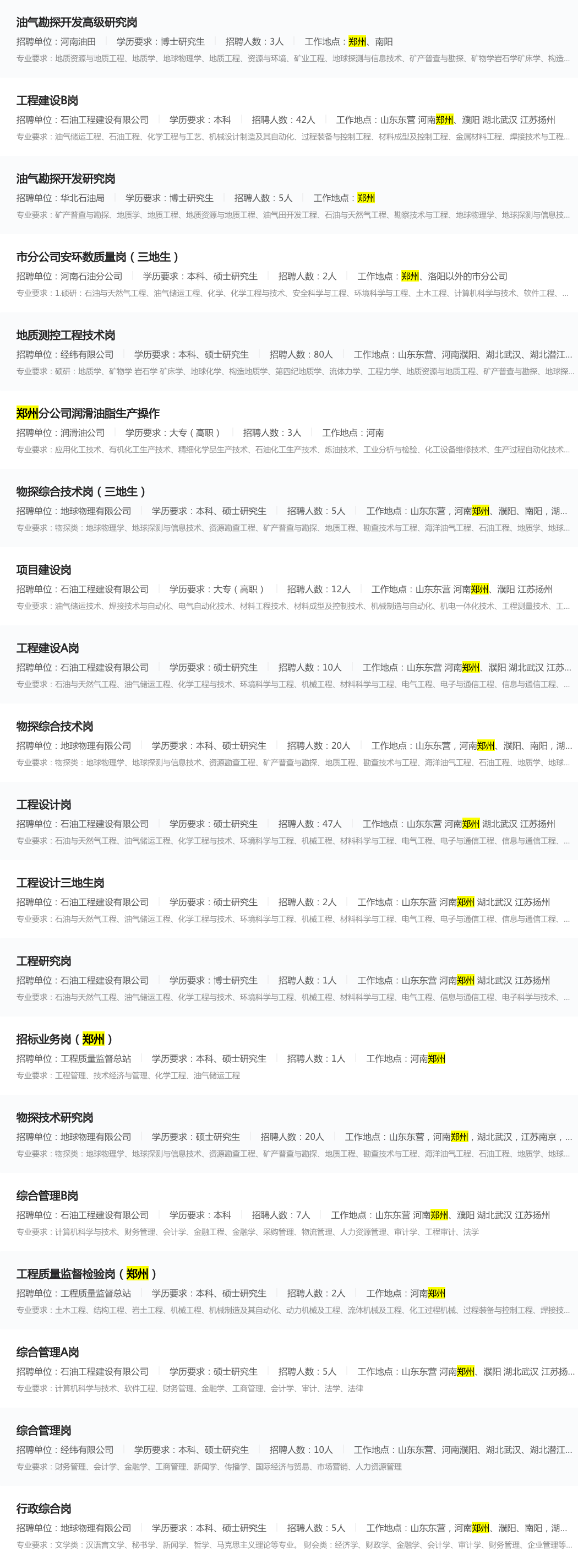 国企!中国石化郑州招聘工作人员若干名【至11.3】