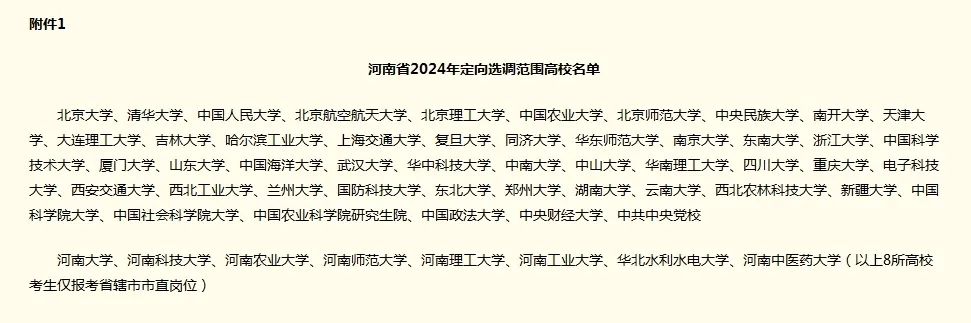 河南省2024年定向国内部分高校