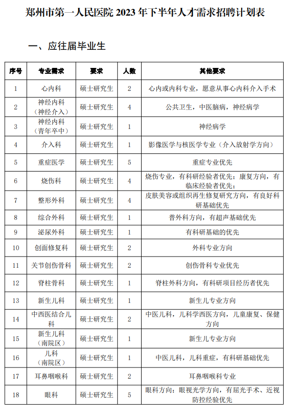 郑州市第一人民医院根据医院实际,经医院党委研究,决定面向社会公开招聘医疗、医技、药学、公共卫生、护理(50名)等各专业人员。具体事宜安排如下: