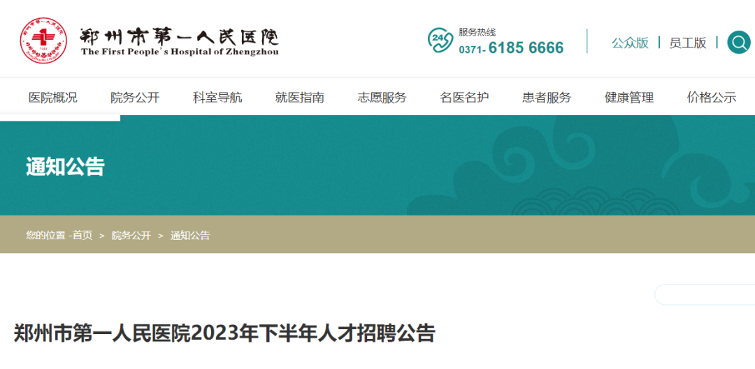 郑州市第一人民医院招聘150名工作人员(含护理人员50名)