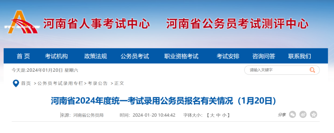 河南省2024年度统一考试录用公务员报名有关情况仅通过河南人事考试网对外公布,请报考者及时关注,理性审慎选择报考职位,避免被社会上的虚假信息误导。