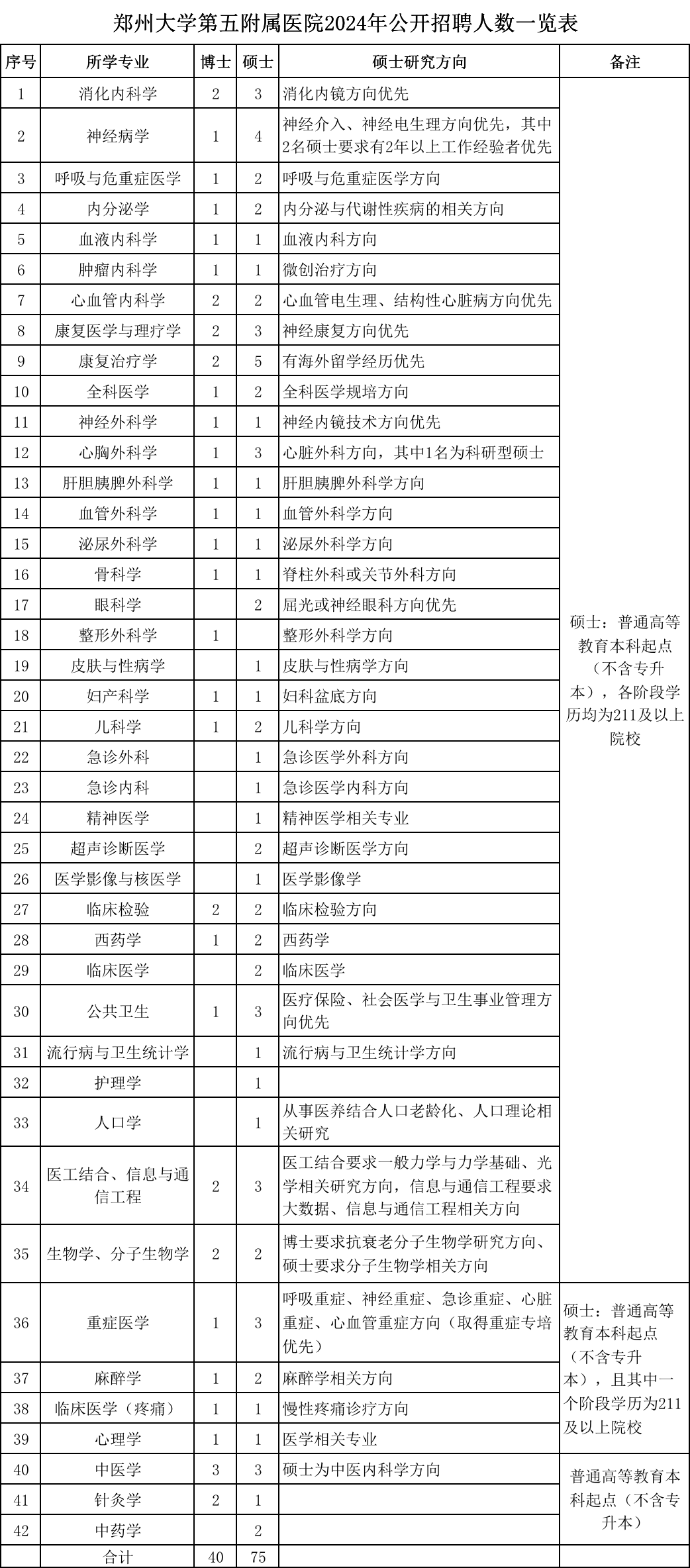 有编制!郑州大学第五附属医院招聘工作人员115人!截止2.8