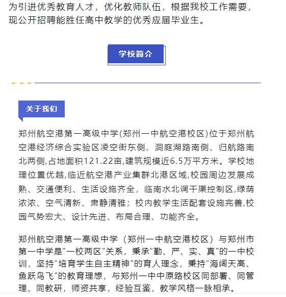 正在阅读:郑州航空港第一高级中学诚聘优秀毕业生