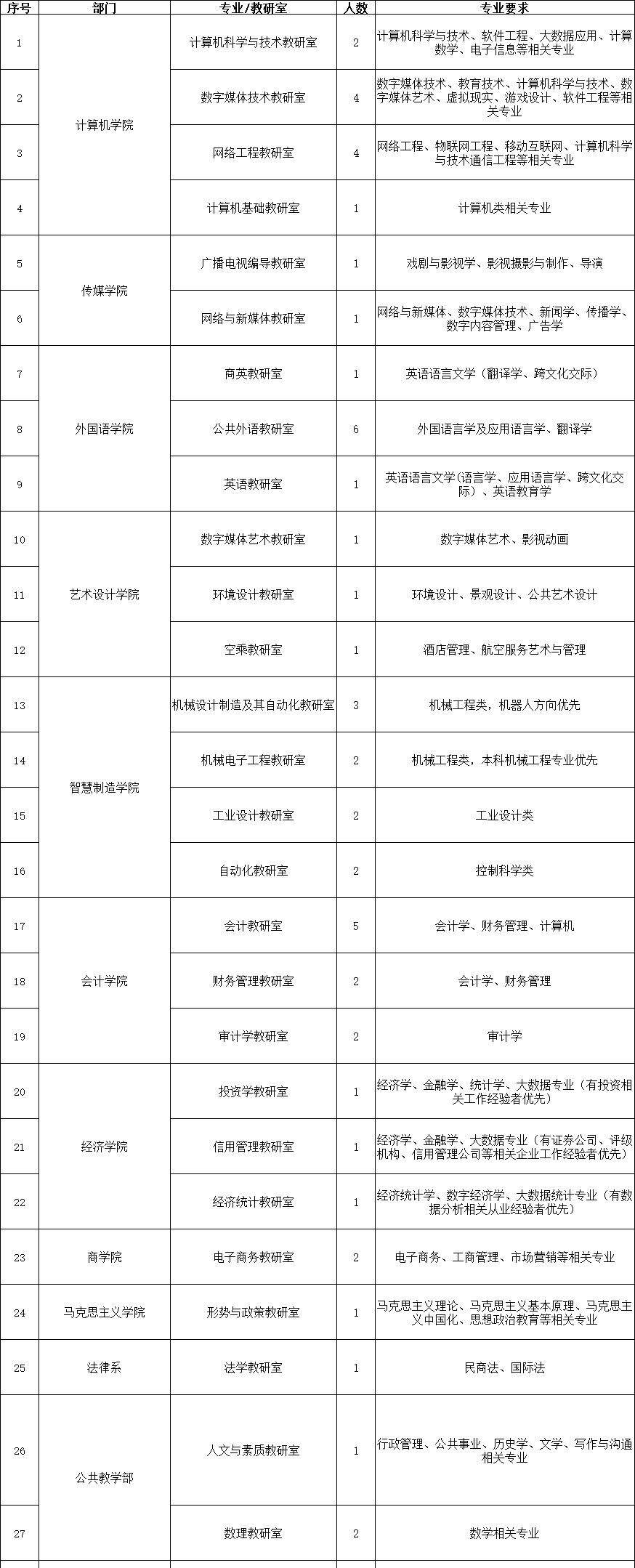 二、招聘岗位及要求