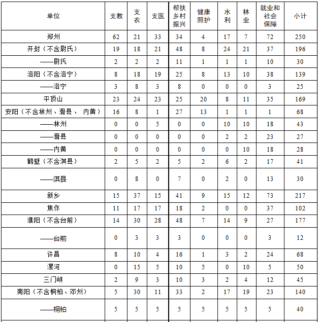 1. 河南省2024年高校毕业生“三支一扶”计划名额分配方案