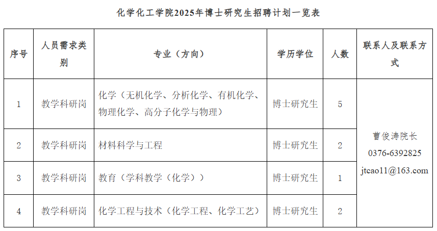信阳师范大学化学化工学院2025年诚聘海内外优秀人才公告